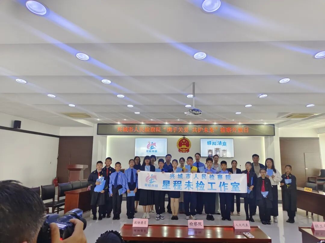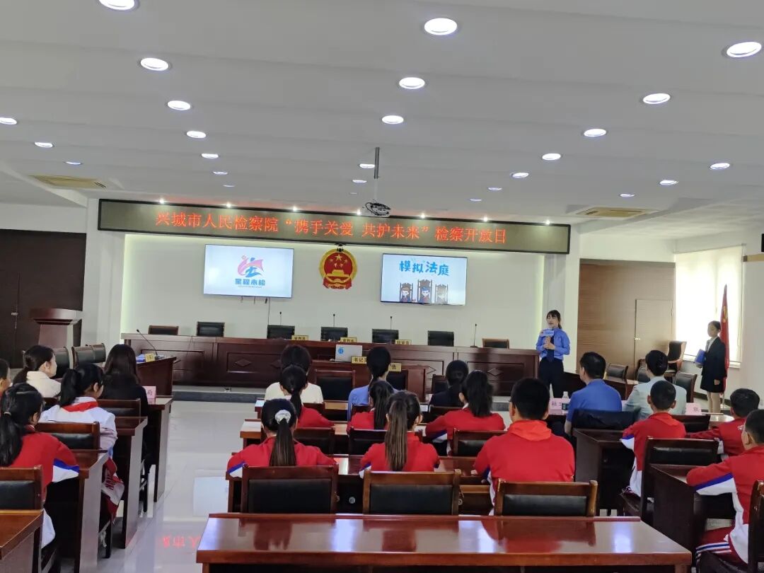 阳光明媚,万物昂扬。在“六一”国际儿童节来临之际,为推动“六大保护”协同发力,共同筑牢未成年人权益保护防线,5月28日上午,兴城市人民检察院“星程未检”工作室邀请兴城市南一小学师生代表走进检察机关,举办“携手关爱 共护未来”检察开放日活动,引领孩子们零距离感受检察工作,构筑孩子们的法治梦想。