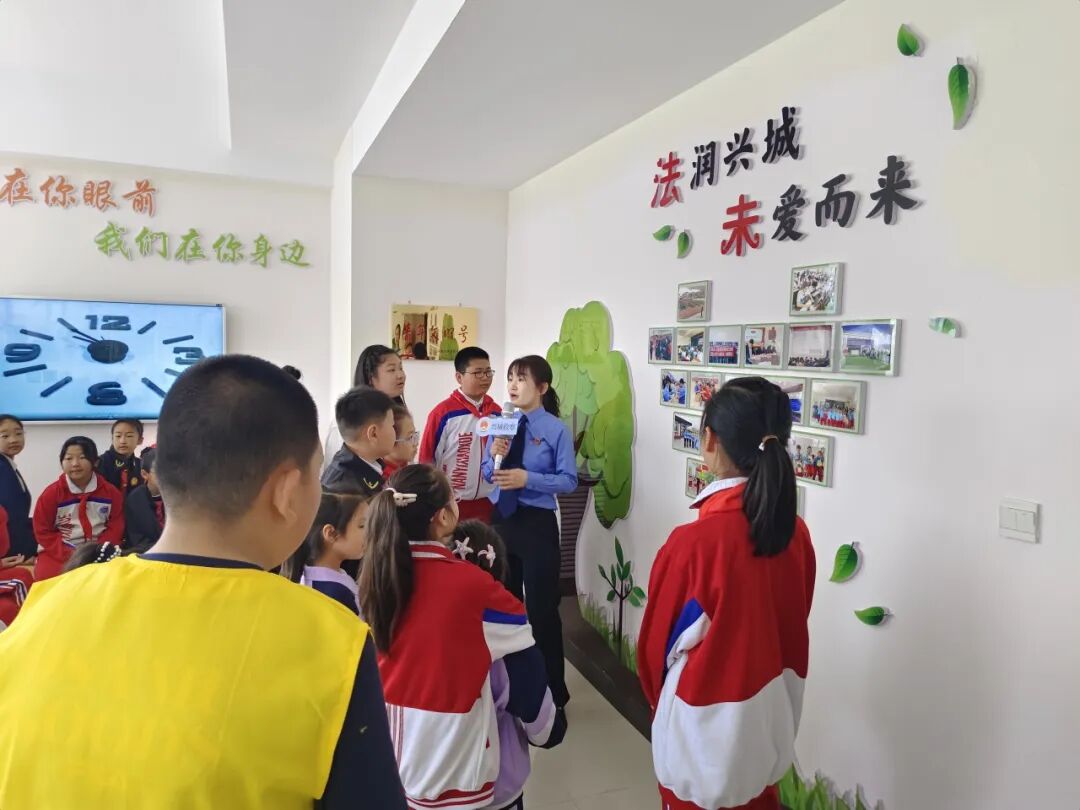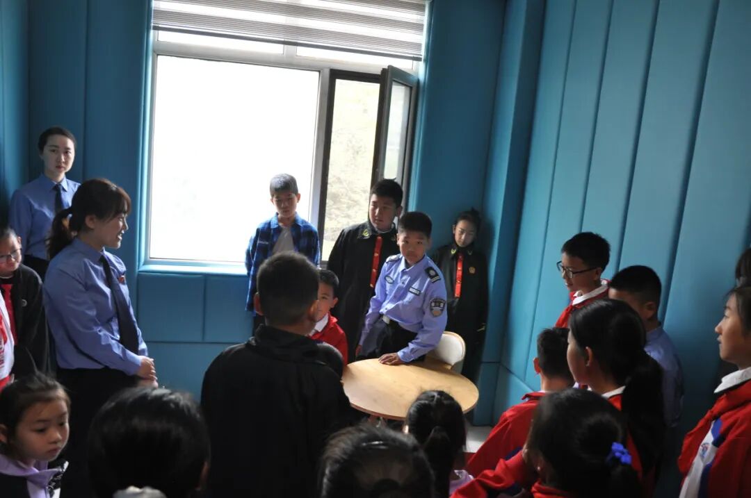 伴随着轻快的脚步,小朋友们来到了兴城市人民检察院未成年人检察办案工作区,认真听取未检干警刘志超同志介绍了未检工作的主要内容和未检办案区的布局。同学们走进询问讯问区,看到了让人心情舒缓的天蓝色软包墙壁、拉进距离的圆桌和平等座位;走进心理疏导区,亲身体验了充满乐趣的沙盘游戏;还走进了普法宣传区,观看了普法宣传短视频和普法宣传展板。